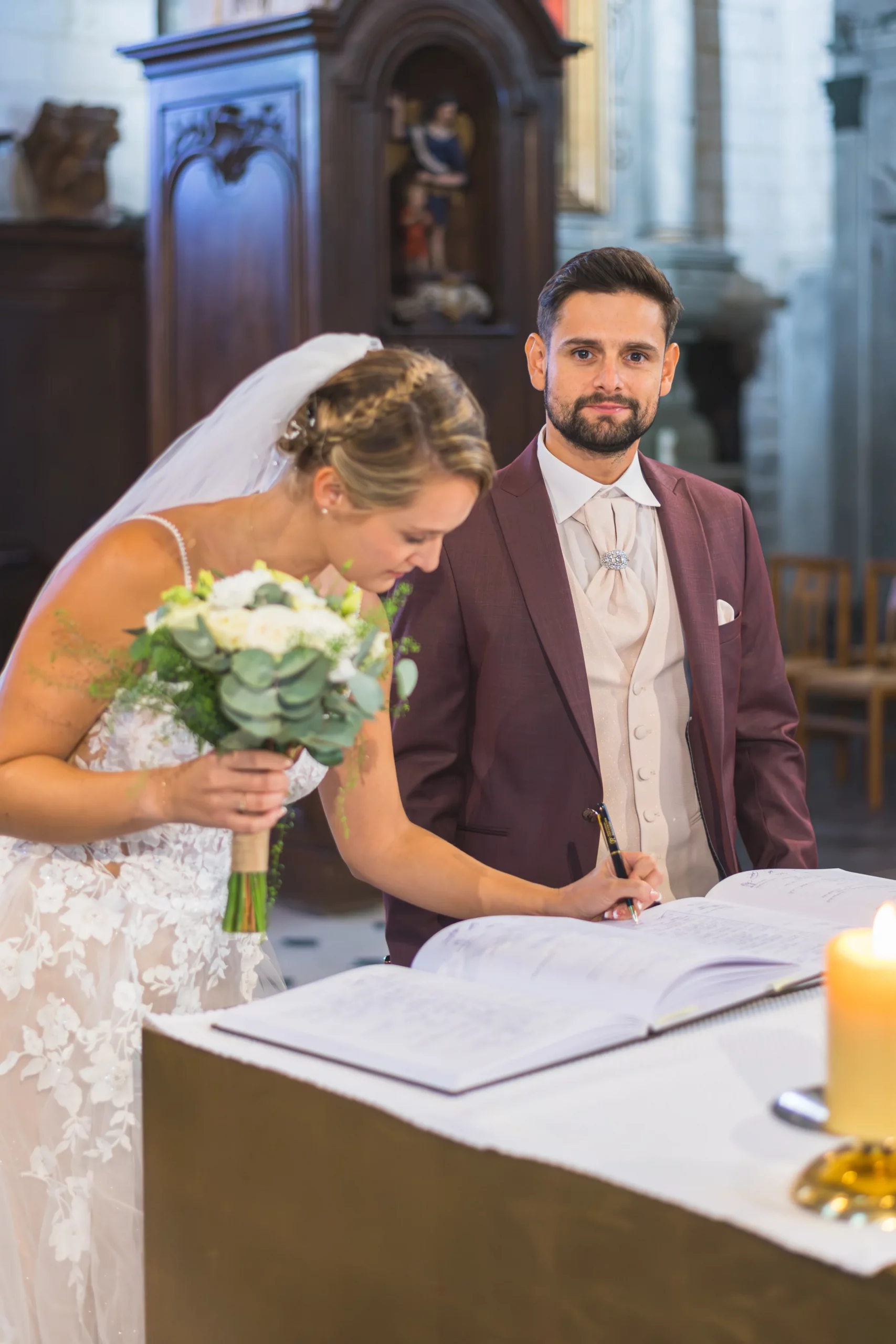 Le jour du mariage durant ma préparation, elle a su me détendre (car oui j’étais très stressée), me donner des conseils concernant la robe et, notamment, l’enfilage de celle ci après le maquillage et la coiffure. A la mairie elle a su capturé les moments forts et ces photo sont sublimes.